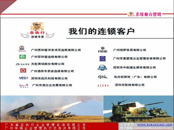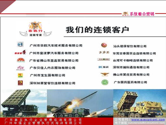 4、打造企業(yè)個(gè)性化的盈利管理模式――――“贏在執(zhí)行”項(xiàng)目實(shí)施后不能為客戶帶來效益,承諾將全額退款。