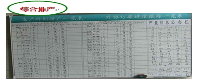 項(xiàng)目組在調(diào)研過程中發(fā)現(xiàn)各車間生產(chǎn)無任何數(shù)據(jù),無相關(guān)的報(bào)表顯示每月、每周、每天的產(chǎn)量數(shù)據(jù),也沒有計(jì)劃每天做什么,做多少。項(xiàng)目組進(jìn)駐后通過將月度綜合 《排產(chǎn)計(jì)劃》分解到每周再到每天,并在各車間班組設(shè)立了《生產(chǎn)任務(wù)指令看板》。使各班組員工能清楚的知道當(dāng)天的生產(chǎn)任務(wù)目標(biāo),也能了解到昨天完工的產(chǎn)量及 累計(jì)劃完成的產(chǎn)量離月目標(biāo)的差距。通過看板的信息使班組員工有一個(gè)共同的目標(biāo)和方向,將每一個(gè)組員凝聚在一起,通過團(tuán)隊(duì)的力量去實(shí)現(xiàn)任務(wù)目標(biāo)。