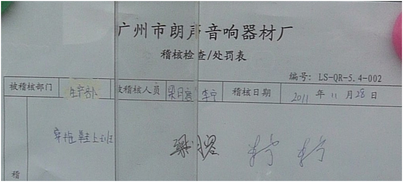 為了打造朗聲音響標(biāo)準(zhǔn)化、規(guī)范化、數(shù)據(jù)化、流程化的現(xiàn)代管理模式,項(xiàng)目組老師經(jīng)過充分的調(diào)研,結(jié)合我司的實(shí)際情況,制定了各車間的關(guān)鍵指標(biāo),設(shè)置了各部門 相關(guān)的管理表單,通過多次培訓(xùn),不斷的檢查、指導(dǎo)并及時(shí)調(diào)整,使我司管理實(shí)現(xiàn)了管理制度化、制度流程化、流程表單化、表單數(shù)據(jù)化。